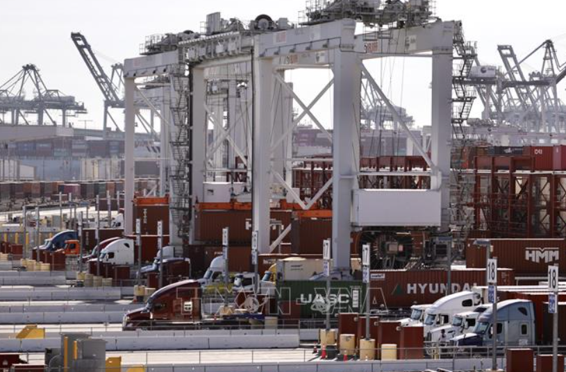 Cảng container hàng hóa ở Los Angeles, California, Mỹ. Ảnh: THX/TTXVN