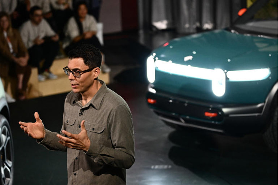 Tổng giám đốc điều hành Rivian Robert "RJ" Scaringe phát biểu tại buổi ra mắt xe điện Rivian R3X tại Nhà hát Rivian South Coas. Ảnh: Patrick T.Fallon