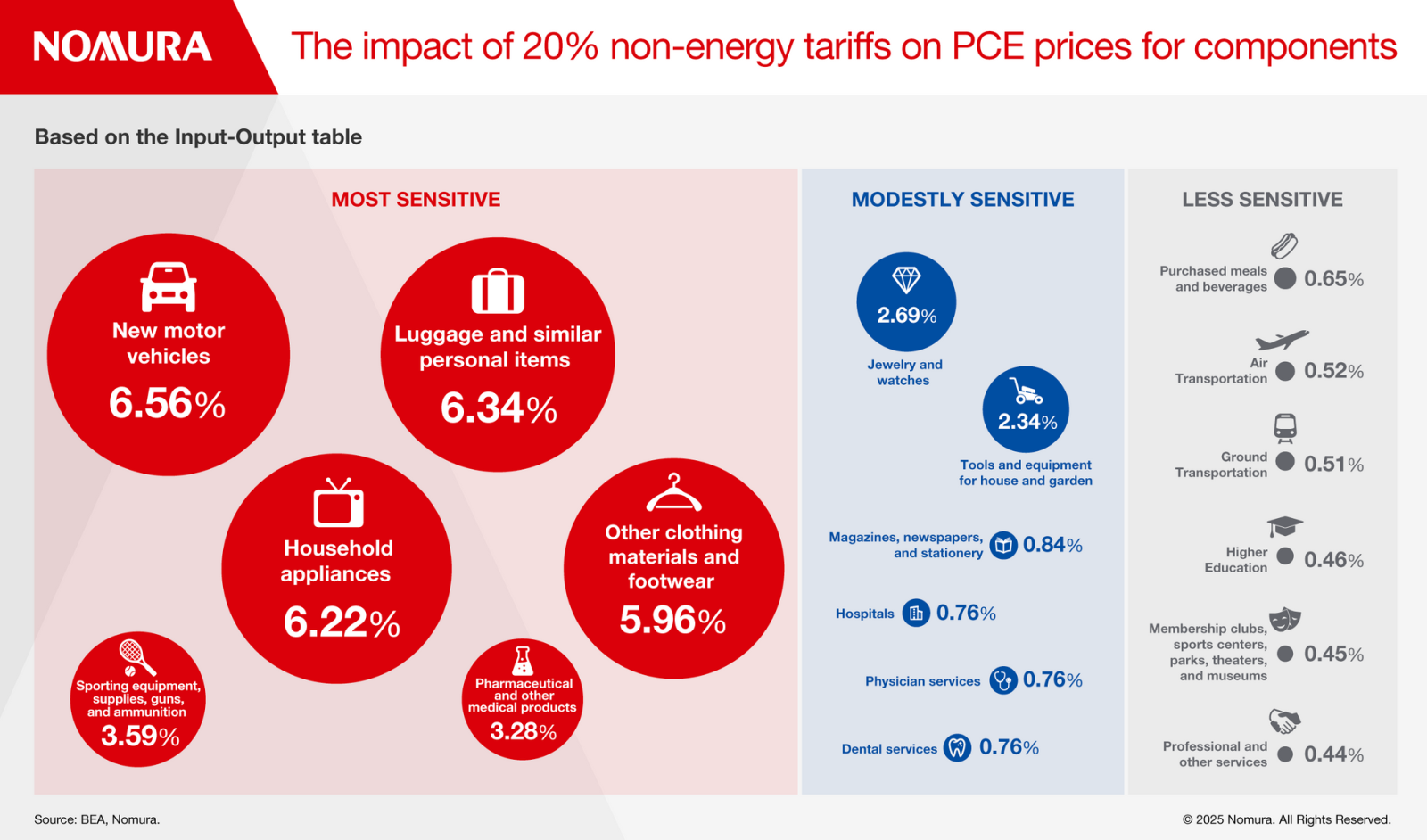 Ở chiều ngược lại, Trung Quốc, Nhật Bản và Hàn Quốc chỉ hấp thụ dưới 10% chi phí thuế quan, cho thấy chi phí chủ yếu được chuyển sang khách hàng Mỹ. Đặc biệt, tỷ lệ hấp thụ thấp của Trung Quốc phản ánh biên lợi nhuận eo hẹp sau nhiều năm giảm phát.