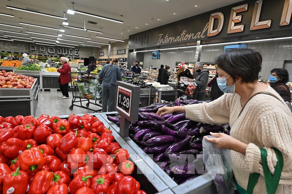 Người dân mua thực phẩm tại siêu thị ở Glendale, California, Mỹ. Ảnh: AFP/TTXVN