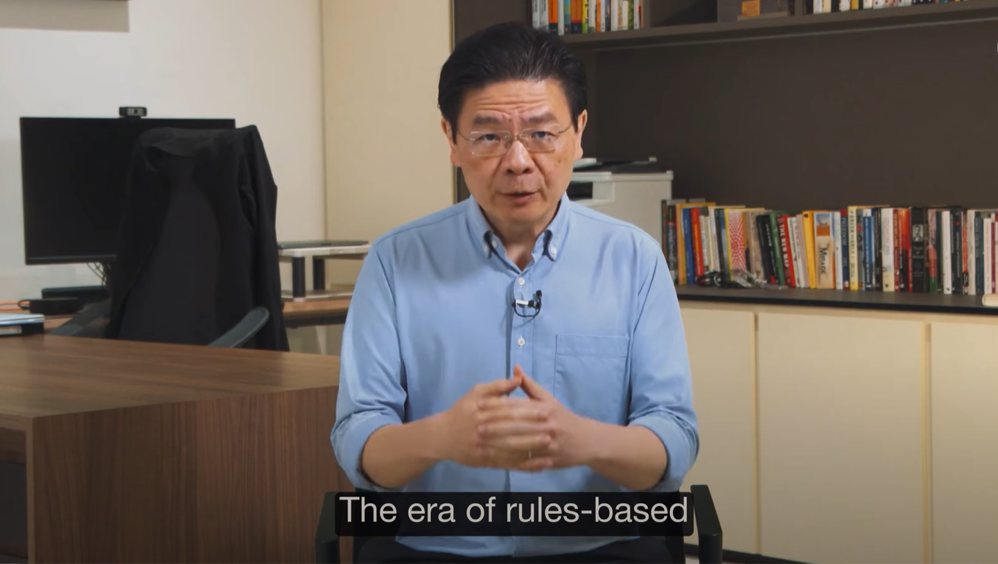 Thủ tướng Singapore Lawrence Wong cho rằng thời đại của thương mại tự do, toàn cầu hóa và theo trật tự đã tới hồi kết sau chính sách thuế của ông Donald Trump (Ảnh màn hình)