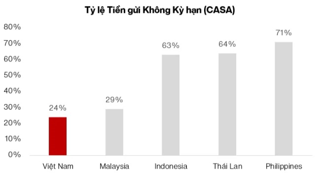 Môi trường lãi suất tăng nhẹ - với lãi suất tiền gửi kỳ hạn 12 tháng có thể tăng thêm 50-100 điểm cơ bản - nhìn chung mang lại lợi ích cho các ngân hàng có chi phí vốn thấp. Tuy nhiên, tỷ lệ CASA (tiền gửi không kỳ hạn) của hệ thống ngân hàng Việt Nam vẫn tương đối thấp (khoảng 20-25%), khiến dư địa mở rộng biên lãi ròng (NIM) không quá lớn. Do đó, việc tránh các ngân hàng có tỷ lệ cho vay trên huy động (LDR) quá cao, đồng thời tập trung vào những ngân hàng có chất lượng tài sản tốt và năng lực quản trị rủi ro hiệu quả, sẽ là yếu tố quyết định thành công.