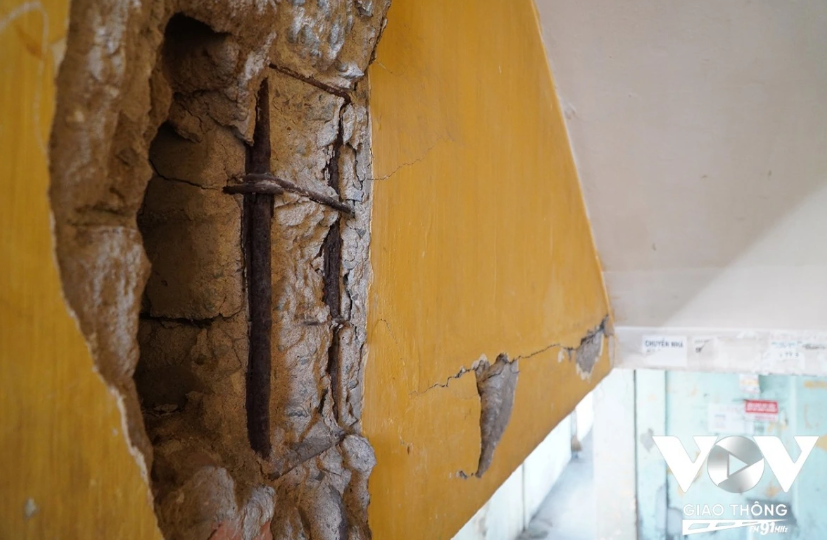 Những mảng tường bong tróc theo thời gian tại chung cư Phạm Thế Hiển