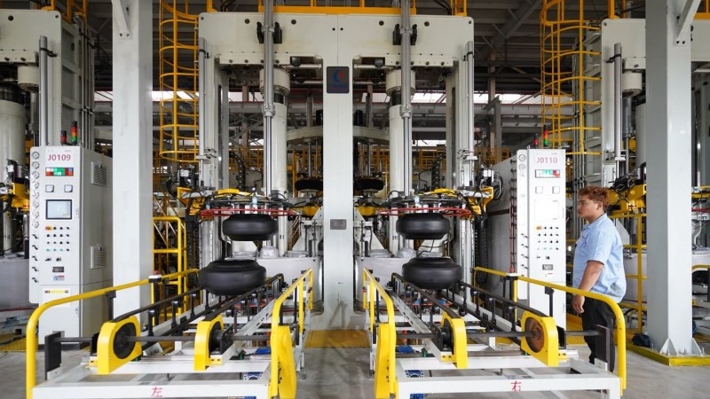 Trong một nhà máy sản xuất lốp xe ô-tô ở Campuchia. (Ảnh: Fresh News)