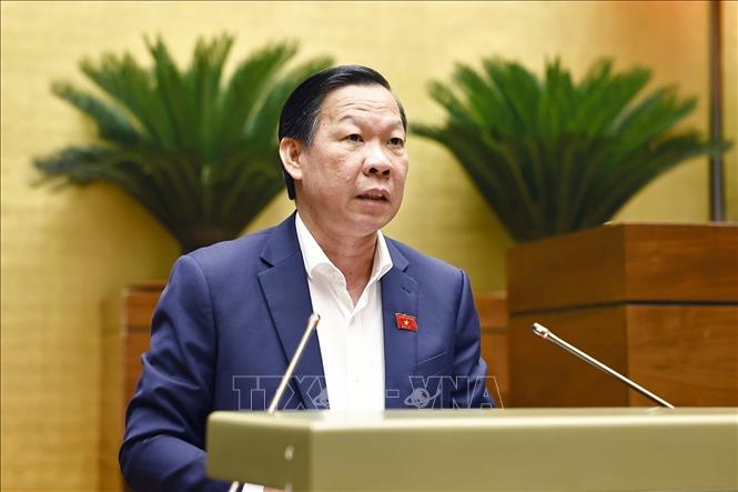 Chủ nhiệm Ủy ban Kinh tế và Tài chính của Quốc hội Phan Văn Mãi trình bày Báo cáo giải trình, tiếp thu, chỉnh lý dự thảo Luật Thuế tiêu thụ đặc biệt (sửa đổi). Ảnh: Doãn Tấn/TTXVN