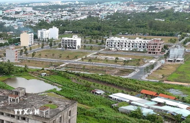 Dự án Khu đô thị mới STK An Bình của Công ty Cổ phần đầu tư STK tại phường An Bình, thành phố Cần Thơ, nhìn từ trên cao. (Ảnh: Thanh Liêm/TTXVN)