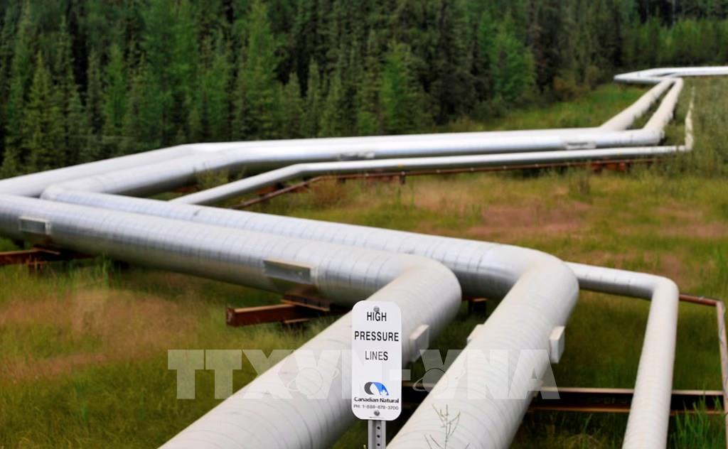 Đường ống dẫn cát dầu trong dự án của Công ty Canada CNRL ở tỉnh Alberta, Canada. Ảnh: Reuters/TTXVN