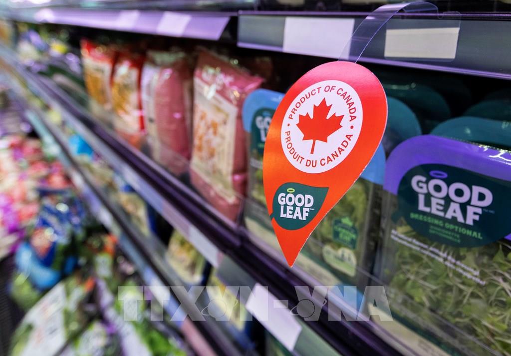 Hàng hóa nội địa Canada được bày bán trong siêu thị ở Toronto, Ontario ngày 4/3/2025. Ảnh: THX/TTXVN