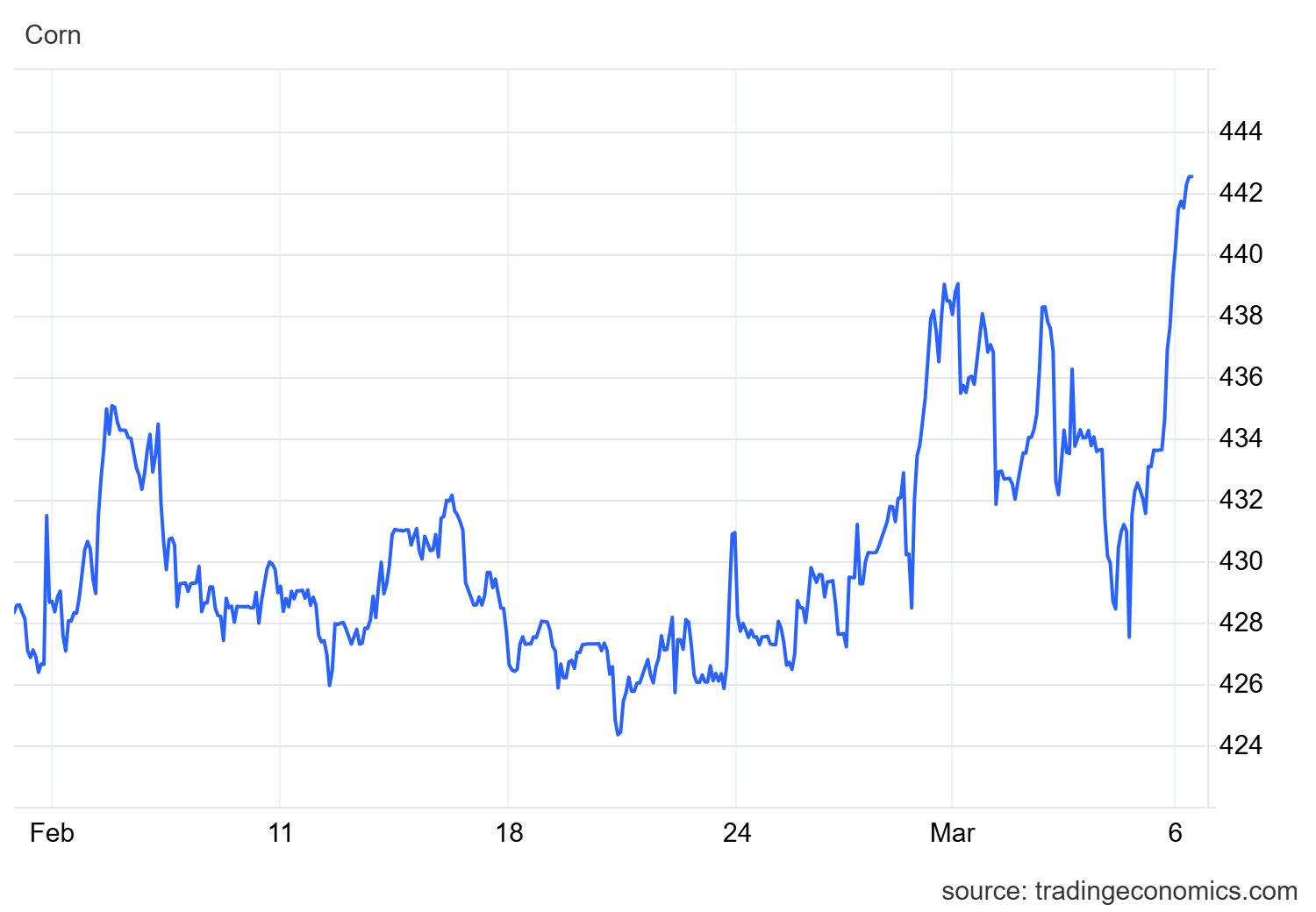 Tại Mỹ, thị trường đang theo dõi điều kiện thời tiết và chi phí đầu vào trước khi nông dân bắt đầu gieo trồng trên diện rộng. Doanh số xuất khẩu ngô của Mỹ trong tuần qua đạt 79,6 triệu bushel, cao hơn mức trung bình, với các khách hàng lớn gồm Hàn Quốc, Colombia và Mexico.