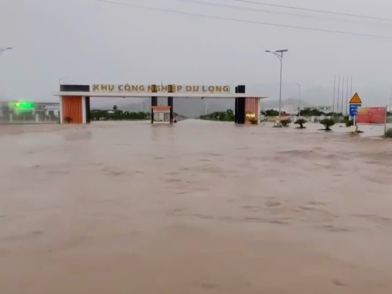 Toàn bộ Khu công nghiệp (KCN) Du Long (xã Thuận Bắc, tỉnh Khánh Hòa) bị ngập sâu. Nhiều tuyến đường nội khu và kết nối bị chia cắt, mực nước có nơi dâng gần 1m, khiến hoạt động sản xuất bị đình trệ.