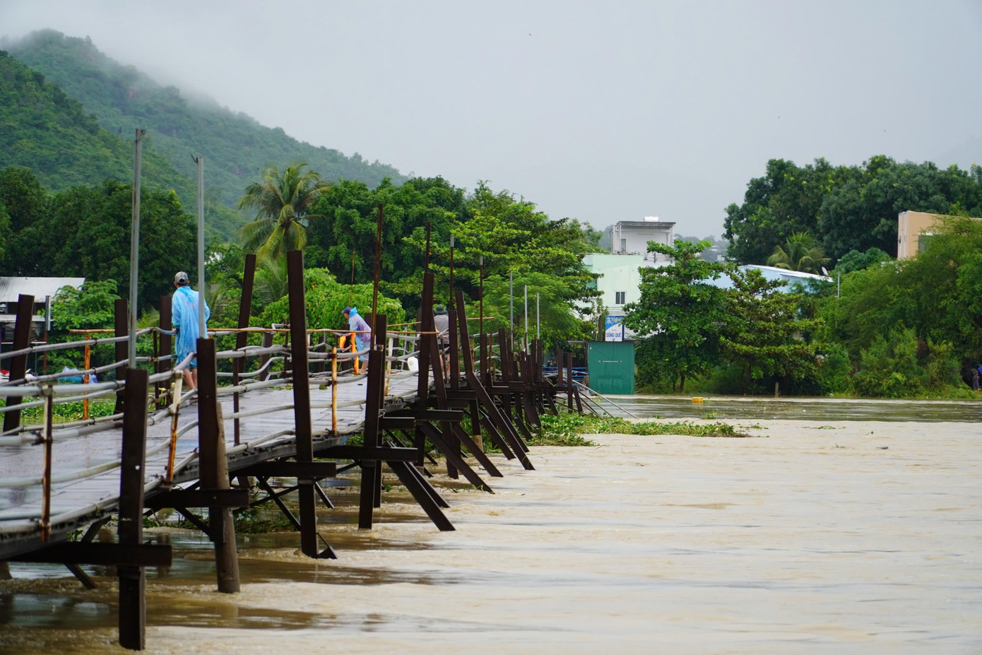 Tại phường Tây Nha Trang, nhiều khu dân cư cũng bị ngập sâu. Đáng chú ý, cầu gỗ Phú Kiểng bắc qua sông Cái Nha Trang đã bị lũ cuốn trôi. Lực lượng chức năng túc trực tại hiện trường, liên tục cảnh báo người dân không qua lại khu vực nguy hiểm.