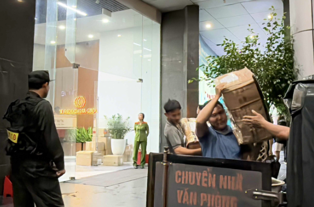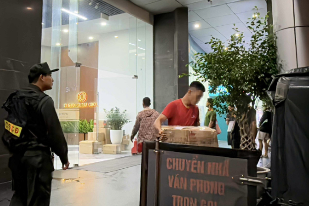 Chiều 7/10, một số cảnh sát tiếp tục có mặt tại tòa nhà để làm việc, đến tối thì họ vận chuyển các thùng đồ đã được niêm phong đi nơi khác.