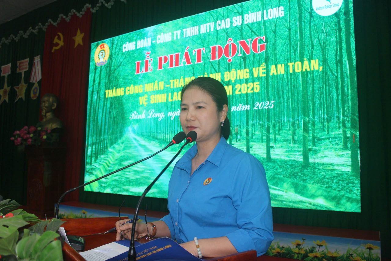 Ngày 9/5, Công ty và Công đoàn Công ty TNHH MTV Cao su Bình Long đã tổ chức Lễ phát động Tháng Công nhân – Tháng hành động về an toàn, vệ sinh lao động năm 2025.