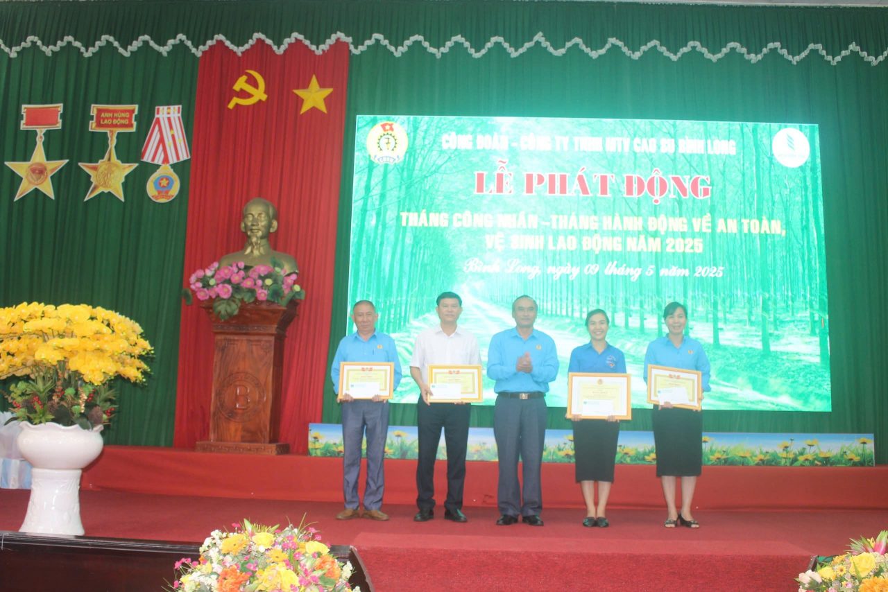 Nhân dịp này, các tập thể, cá nhân đạt thành tích xuất sắc đã vinh dự nhận bằng khen của Tổng Liên đoàn Lao động Việt Nam và Công đoàn Cao su Việt Nam.
