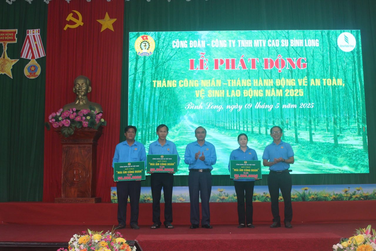 Trong Tháng công nhân năm nay, Công ty – Công đoàn Công ty đã tổ chức thăm hỏi, tặng quà cho 28 công nhân bị tai nạn lao động tỷ lệ thương tật từ 21% trở lên với số tiền 56 triệu đồng; tặng quà cho 140 công nhân lao động có hoàn cảnh khó khăn với tổng số tiền 280 triệu đồng. Công đoàn Cao su Việt Nam hỗ trợ kinh phí xây dựng 4 nhà “Mái ấm Công đoàn” với số tiền 200 triệu đồng.