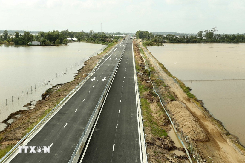 Tuyến chính Dự án đường bộ cao tốc Bắc-Nam phía Đông đoạn Cần Thơ-Cà Mau qua địa bàn xã Vĩnh Tường, thành phố Cần Thơ. (Ảnh: Duy Khương/TTXVN)
