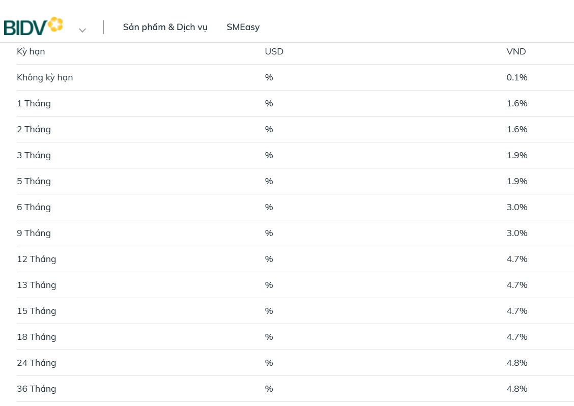 Cập nhật lãi suất BIDV mới nhất