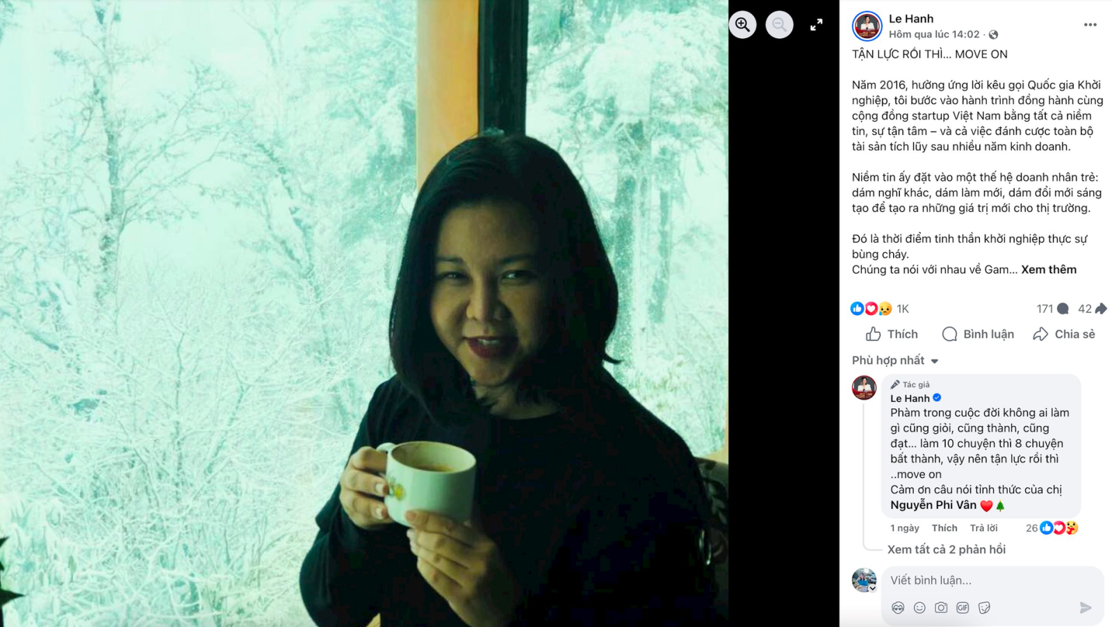 Trong bối cảnh đó, dòng chia sẻ của CEO Lê Hạnh đã thu hút sự chú ý của dư luận. Bà viết: “Khép lại 10 năm đồng hành cùng khởi nghiệp Việt, tôi mang theo nhiều giá trị đã trao đi, nhiều tình cảm đã nhận lại – và cả những bài học vô cùng đắt giá. Khép lại một chặng đường, nhưng tinh thần khởi nghiệp, tinh thần Shark Tank vẫn là một phần bản sắc không thể tách rời.”