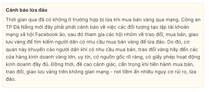 Ngay phía dưới những bài đăng rao bán này, lượng người tương tác, hỏi mua hoặc xin thông tin liên hệ rất nhộn nhịp, bất chấp quy định của NHNN rằng người dân chỉ được thực hiện mua bán vàng miếng SJC tại các đơn vị được cấp giấy phép kinh doanh mua bán vàng. Điều này có nghĩa việc trao đổi, mua bán vàng miếng SJC giữa các cá nhân trên mạng là trái phép, có thể bị xử phạt. Chưa kể, nguy cơ bị lừa đảo khi mua bán vàng miếng online.