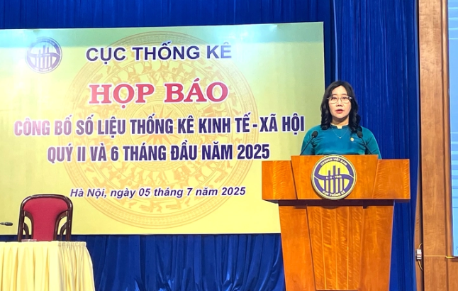Thông tin được bà Nguyễn Thị Hương, cục trưởng Cục Thống kê, cho biết tại cuộc họp báo công bố số liệu thống kê kinh tế - xã hội quý 2 và 6 tháng đầu năm 2025, do cơ quan này tổ chức ngày 5-7 tại Hà Nội.