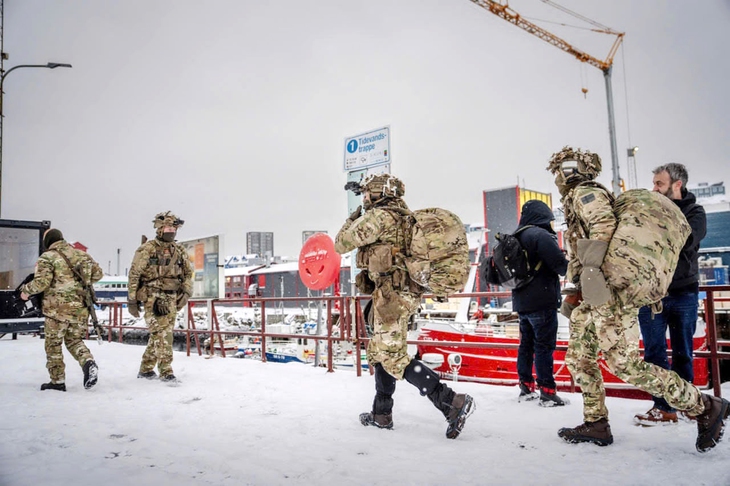 Các binh sĩ Đan Mạch xuất hiện tại cảng ở Nuuk, thủ phủ Greenland, vào hôm 18-1 - Ảnh: Reuters