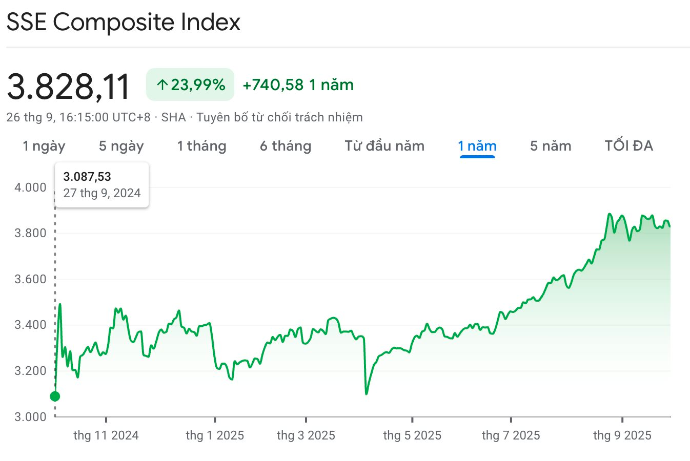 Nhà đầu tư Trung Quốc đánh dấu khởi đầu của đợt tăng giá này, được gọi là “hiệu ứng 9.24,” bắt đầu từ ngày 24/9/2024 — khi Thống đốc Ngân hàng Trung ương cùng các quan chức tài chính hàng đầu hiếm hoi tổ chức họp báo chung, công bố nhiều biện pháp hỗ trợ nền kinh tế và thị trường chứng khoán.