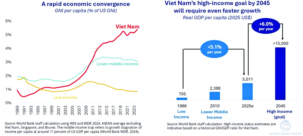 Tuy nhiên, nếu chỉ dừng ở việc “giữ nhịp”, duy trì được sự ổn định, dư địa tăng trưởng trong trung và dài hạn sẽ bị thu hẹp. Các thách thức mang tính cấu trúc vẫn hiện hữu, từ năng suất lao động, chất lượng nguồn nhân lực, mức độ tham gia chuỗi giá trị toàn cầu, cho đến khả năng chống chịu trước các cú sốc khí hậu và biến động thương mại. Chính vì vậy, trên nền tảng ổn định, yêu cầu đặt ra là cần thúc đẩy phát triển nhanh nhưng bền vững. Yêu cầu này càng trở nên cấp thiết hơn trong bối cảnh Việt Nam mới là một nước thuộc nhóm thu nhập trung bình thấp, cơ cấu nhân khẩu học đã sắp bước vào giai đoạn già hóa, và chỉ còn 2 thập kỷ nữa để đạt được mục tiêu nước phát triển, thu nhập cao.