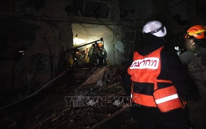 Lực lượng cứu hộ làm nhiệm vụ tại hiện trường vụ tấn công bằng tên lửa đạn đạo của Iran nhằm vào thành phố Dimona, miền Nam Israel, khiến gần 40 người bị thương ngày 21/3/2026. Ảnh: TTXVN phát