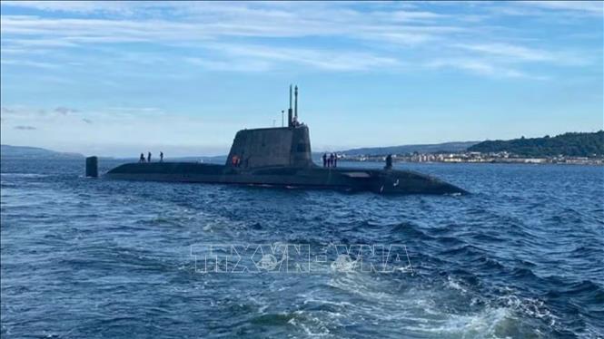Tàu ngầm chạy bằng năng lượng hạt nhân HMS Anson của Hải quân Hoàng gia Anh ở ngoài khơi vùng biển thuộc Mỹ và Caribe. Ảnh: Hải quân Hoàng gia Anh/TTXVN