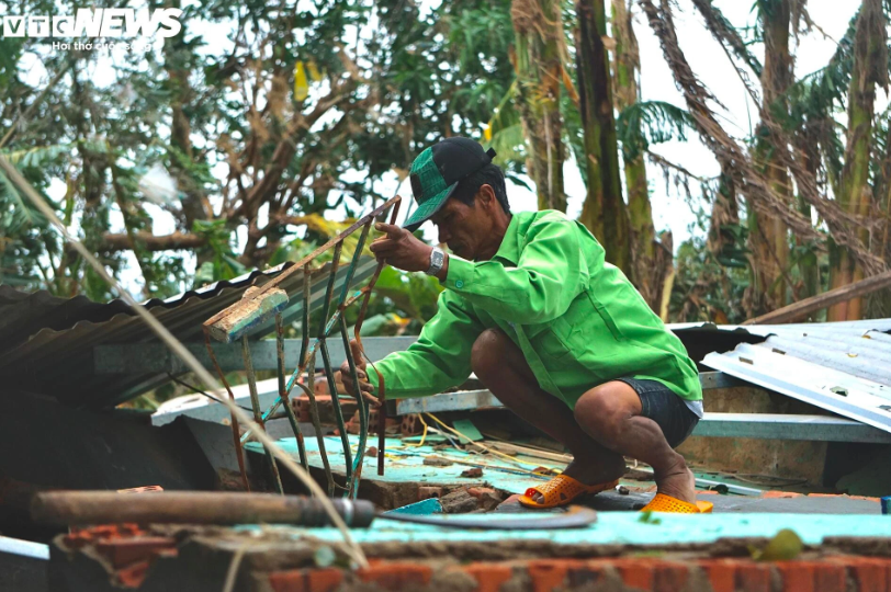 Người dân xã Hoà Thịnh (tỉnh Đắk Lắk) nhặt nhạnh những gì còn sót lại sau thiên tai.
