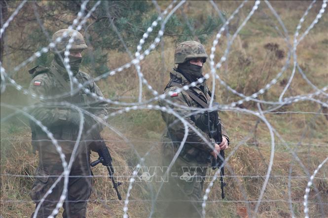 Quân nhân Ba Lan canh gác tại khu vực biên giới Ba Lan - Belarus. Ảnh: AFP/TTXVN