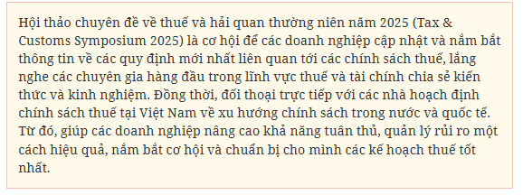 Theo các chuyên gia về thuế của EY Consulting VN, nền kinh tế thế giới và trong nước đang biến động lớn, tạo ra một môi trường kinh doanh tiềm ẩn nhiều rủi ro. Doanh nghiệp cần theo dõi sát các biến động và kịp thời nắm bắt các thay đổi trong chính sách thuế quan và tuân thủ quốc tế để chủ động ứng phó và giảm thiểu thiệt hại, cũng như tối ưu nghĩa vụ thuế.