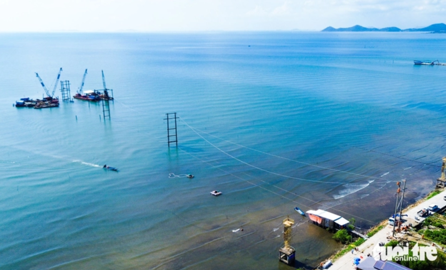 Toàn cảnh vị trí khắc phục cáp ngầm 110kV Hà Tiên - Phú Quốc (ở phường Tô Châu, An Giang) - Ảnh: CHÍ CÔNG.