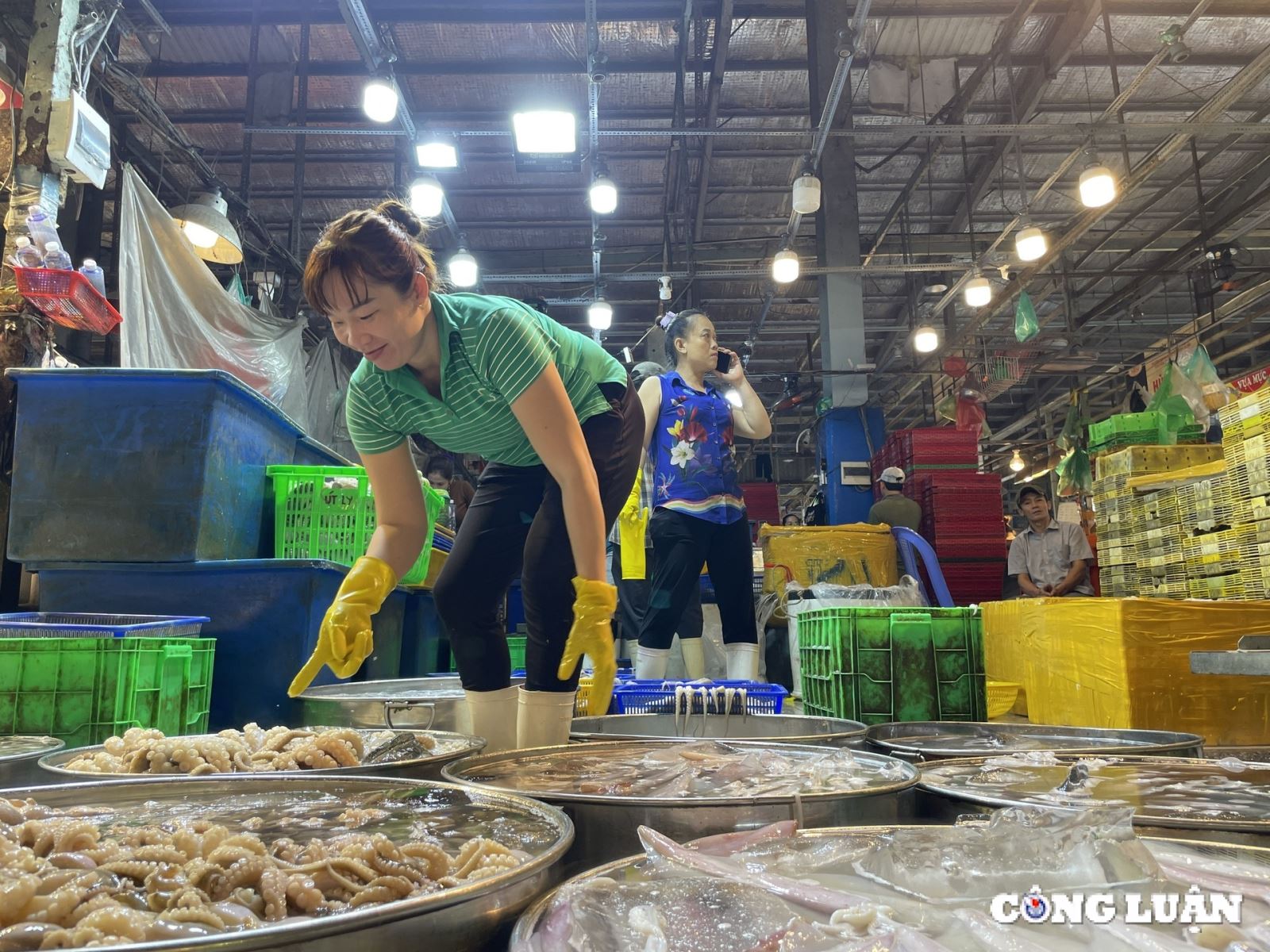 “Để kịp bạn hàng đến lấy vào rạng sáng, từ 20h tối, chúng tôi đã bắt đầu nạo cá”, chị Huyền, nhân viên một quầy bán cá cho biết.