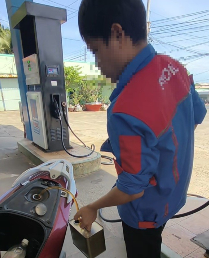 Đáng chú ý, nhân viên cửa hàng đã dùng dụng cụ rút lại toàn bộ số xăng vừa bơm vào bình xe của khách và thách thức người dân kiện.