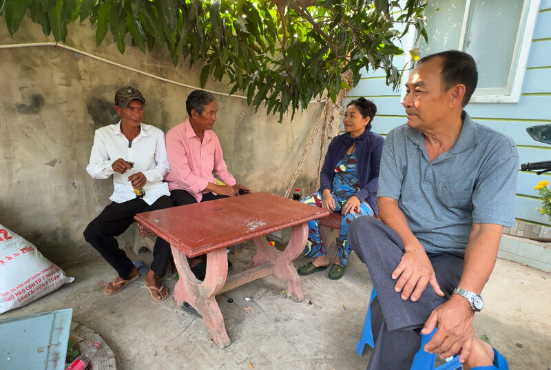 Người thân đến an ủi, động viên anh Thạch Kha Mao vượt qua nỗi buồn vì 2 tờ vé số bị rách không được lãnh thưởng. Ảnh: Hoàng Lộc