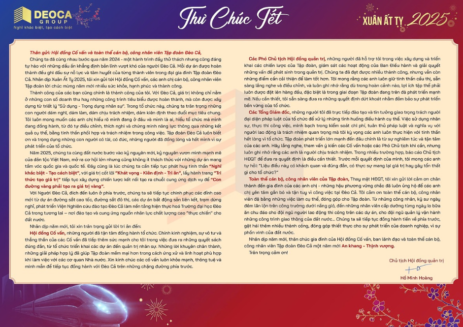 Chủ tịch HĐQT Đèo Cả chúc Tết Ất Tỵ 2025