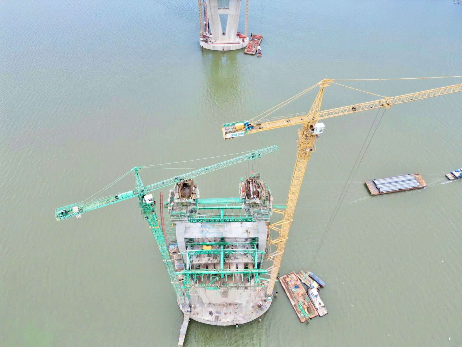 Các trụ cầu Phước An hiện đã cao sừng sững giữa sông Thị Vải.