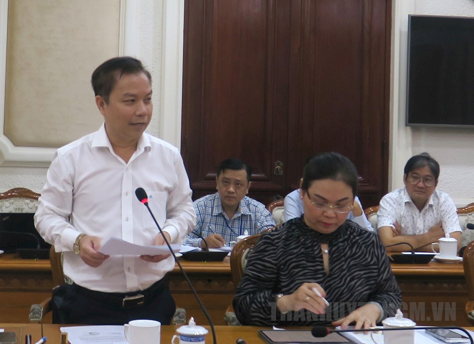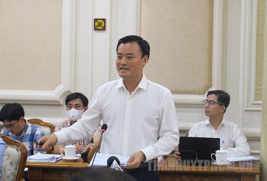 Phó Giám đốc Sở GTVT TPHCM Võ Khánh Hưng trao đổi tại cuộc họp