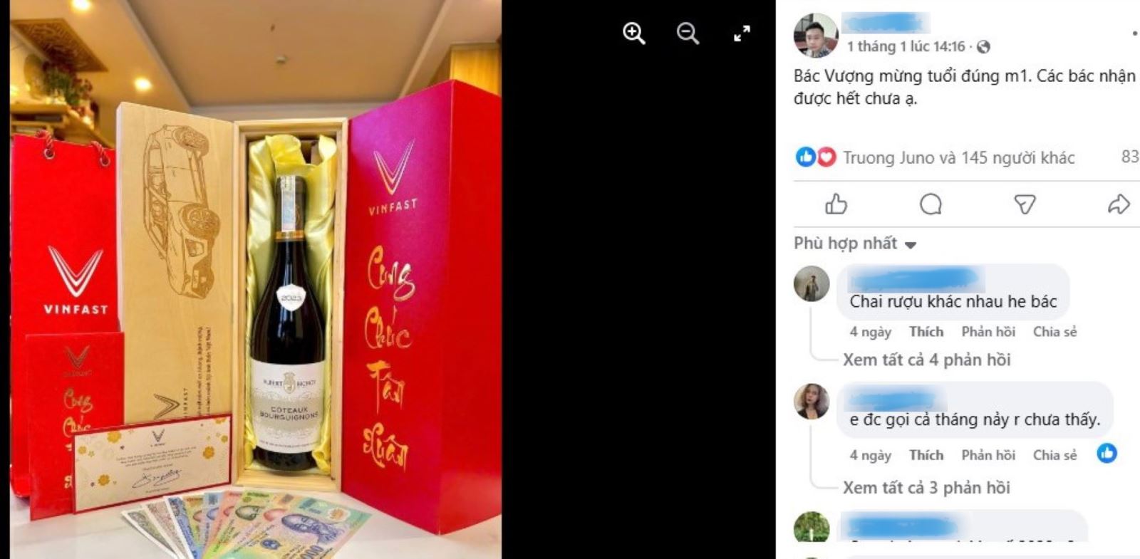 Đặc biệt, không chỉ các chủ xe điện có cơ hội khoe quà, rất nhiều chủ xe xăng cũng hào hứng chia sẻ về bộ quà tặng đặc biệt. “Năm nay vợ chồng mình rất ngạc nhiên khi nhận được quà chúc mừng năm mới từ VinFast, do nhà mình mua xe cách đây cũng vài năm rồi” - chị Minh Phương, chủ sở hữu chiếc VinFast Lux A2.0 bày tỏ - “Phải công nhận một điều là bác Vượng và đội ngũ công ty tinh tế thực sự. Món quà tuy không lớn nhưng con số lì xì và số lượng tiền mừng mới tinh thể hiện sự chu đáo, tỉ mỉ đến từng chi tiết của người tặng”.