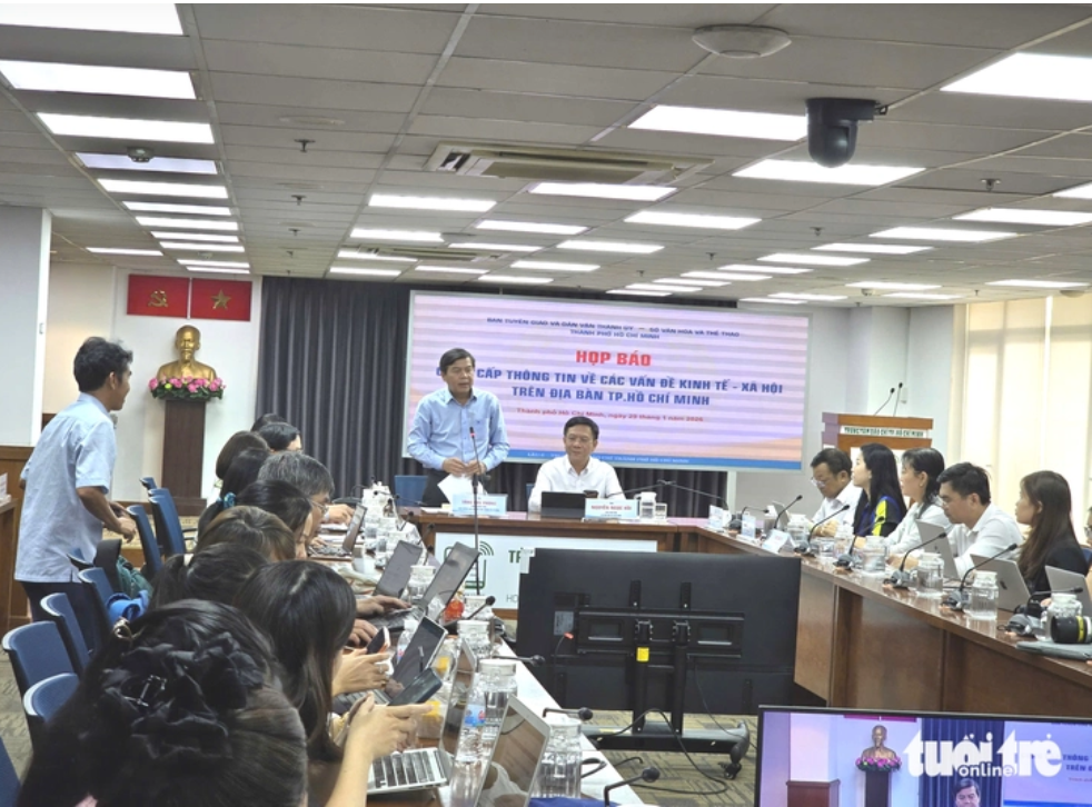 Toàn cảnh buổi họp báo kinh tế - xã hội TP.HCM chiều 29-1 - Ảnh: CÔNG TRIỆU