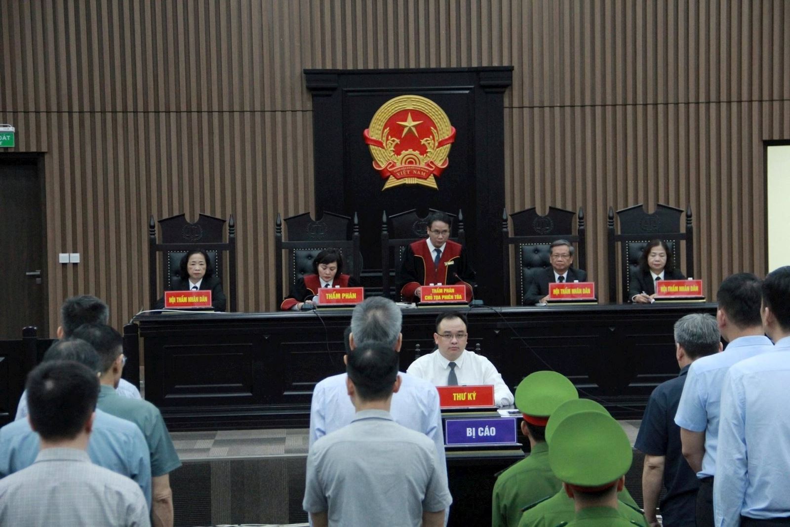Các bị cáo tại phiên tòa sơ thẩm.