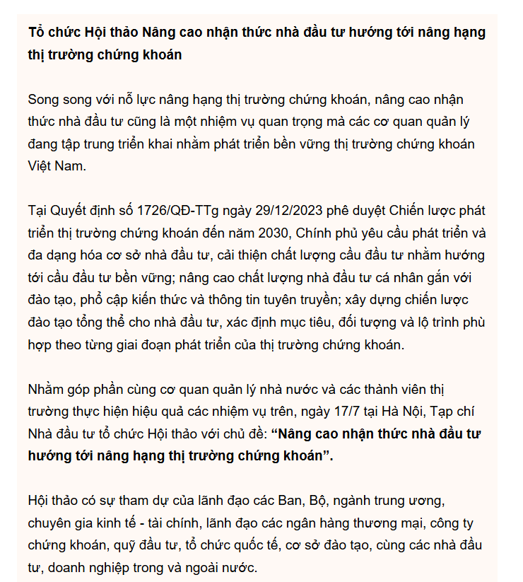 Trong khi đó, với bối cảnh kinh tế vĩ mô ổn định, môi trường lãi suất duy trì mức thấp, chứng khoán được đánh giá là kênh đầu tư hấp dẫn. Ông Vũ Đức Mạnh – CEO Vietinbank Securities đánh giá chứng khoán hấp dẫn nhờ chính sách điều hành linh hoạt của NHNN; kỳ vọng vào tốc độ tăng trưởng lợi nhuận của doanh nghiệp; và thông tin về tiến độ nâng hạng thị trường chứng khoán (TTCK) Việt Nam từ cận biên lên mới nổi.