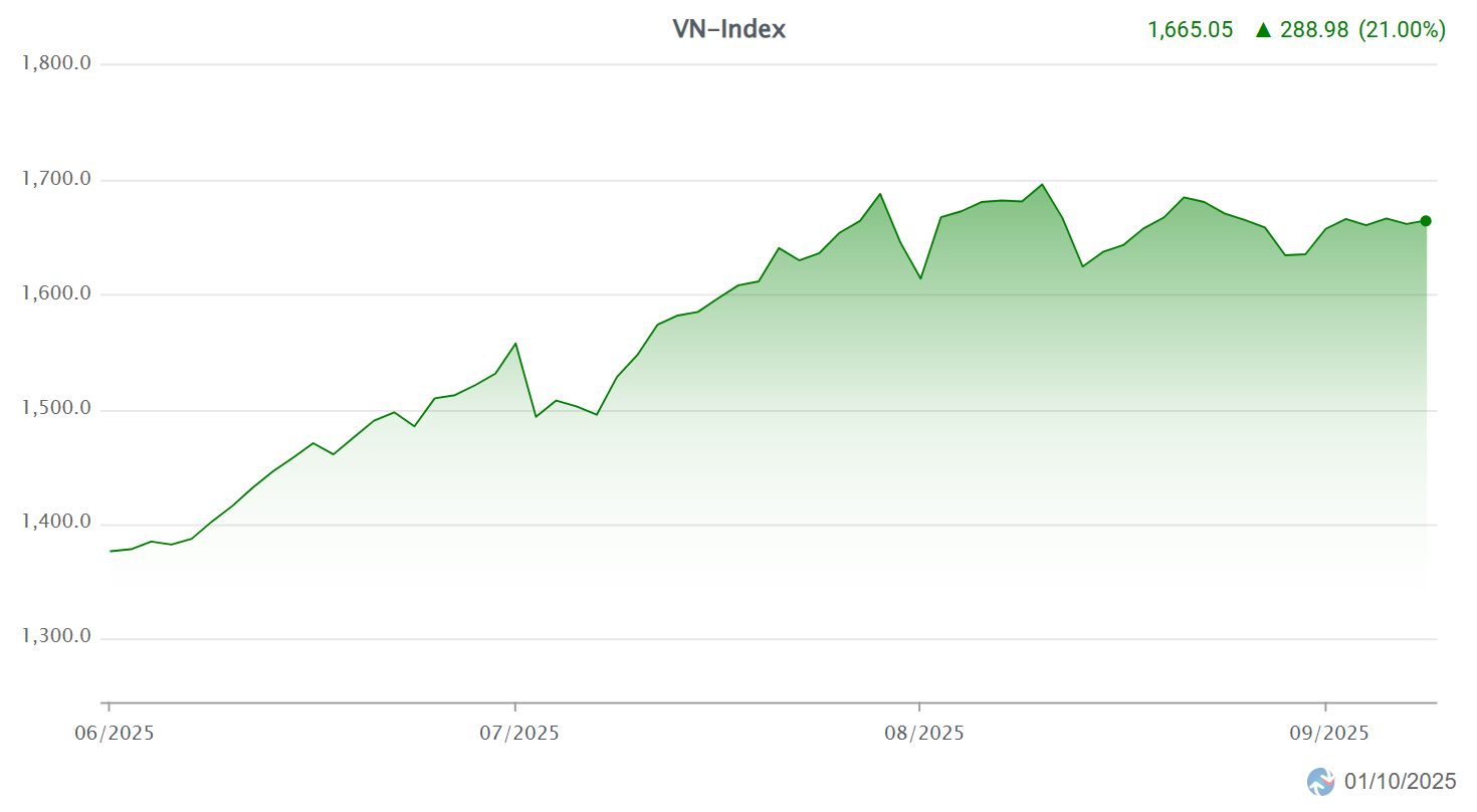 Sau đợt tăng mạnh kéo dài từ đầu tháng 6, chỉ số băt đầu có diễn biến đi ngang và phân hóa rõ hơn từ giữa tháng 8 đến nay.