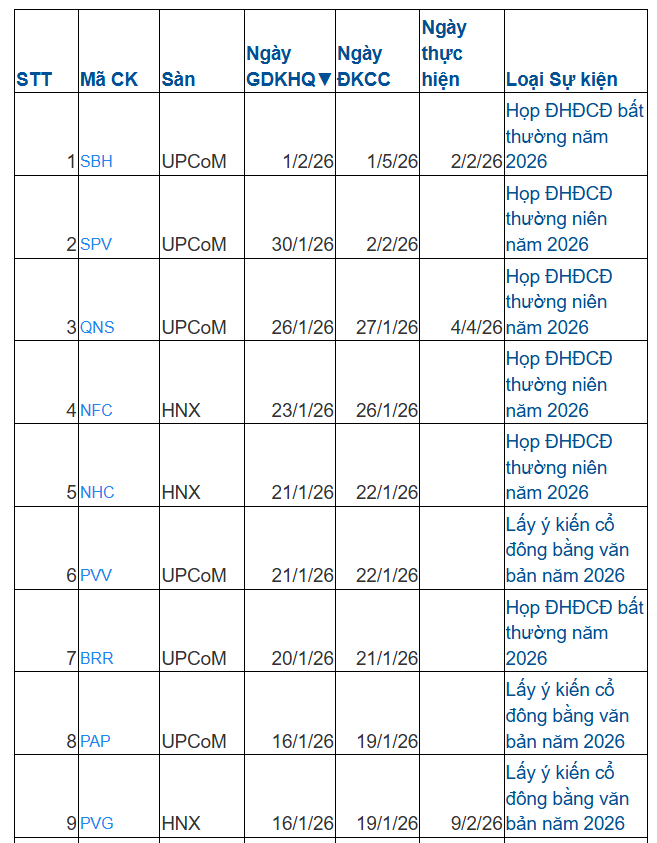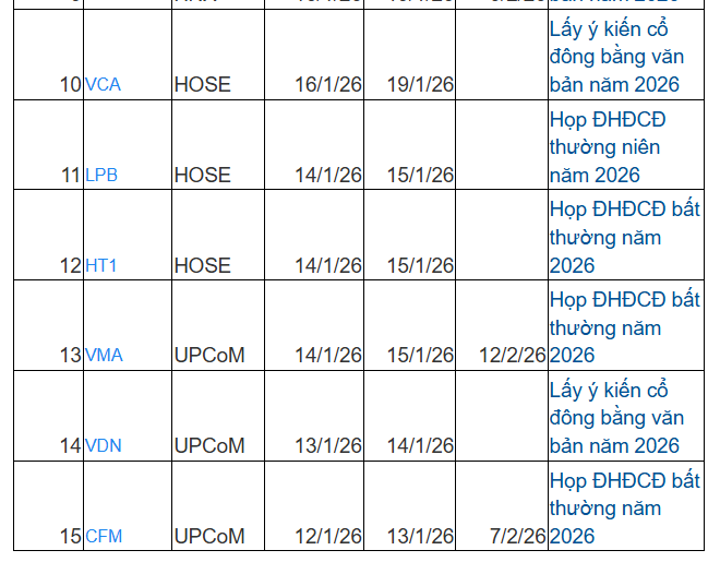 Danh sách doanh nghiệp chốt quyền họp đại hội cổ đông năm 2026 tuần tới: