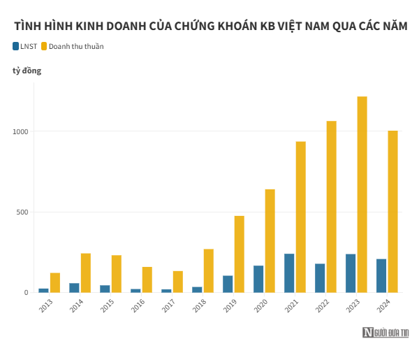 Về bức tranh kinh doanh, trong 10 năm đầu hoạt động, Chứng khoán KB Việt Nam liên tiếp ghi nhận doanh thu và lợi nhuận thăng trầm.