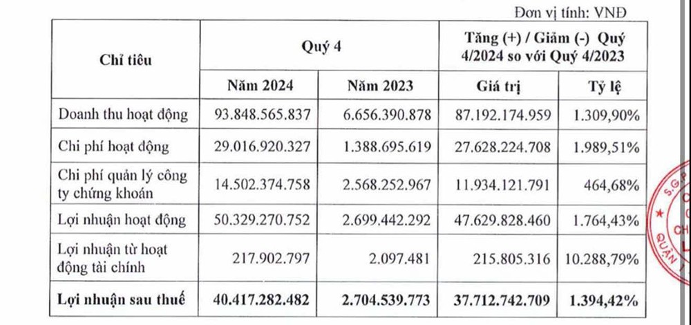 Giải trình kết quả kinh doanh ấn tượng nêu trên, LPBS cho biết, đã hoàn tất tăng vốn và đăng ký các nghiệp vụ giao dịch ký quỹ, ứng trước,... từ nửa đầu 2024, và qua giai đoạn Quý 4/2024, LPBS tập trung đẩy mạnh hoạt động kinh doanh, có nhiều sản phẩm đưa ra thị trường để phục vụ nhà đầu tư, từ đó Doanh thu hoạt động và Lợi nhuận có mức độ tăng trưởng đột biến.