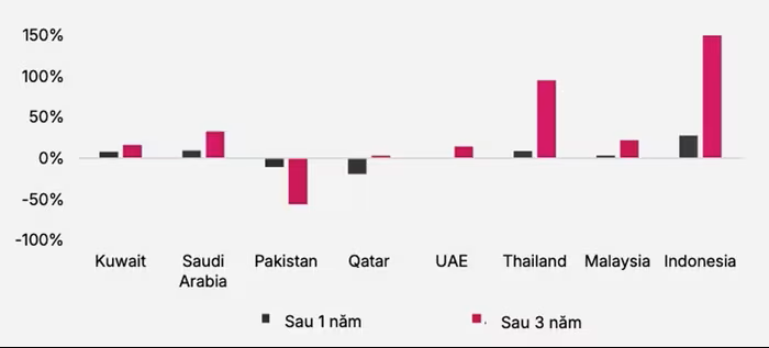 Mức tăng giảm của một số TTCK được FTSE Russell nâng hạng từ cận biên lên mới nổi