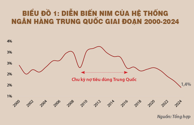 Trong bối cảnh lãi suất thị trường giảm và áp lực cạnh tranh từ công nghệ tài chính (FinTech) tăng lên, NIM của các ngân hàng Trung Quốc liên tục suy giảm. Từ mức trung bình khoảng 2,5% năm 2014, NIM đã giảm xuống dưới 1,4% vào năm 2024. Thay vì dựa quá nhiều vào chênh lệch lãi suất, các ngân hàng đã đẩy mạnh phát triển các dịch vụ tài chính có giá trị gia tăng cao như: quản lý tài sản, ngân hàng đầu tư, bảo hiểm, và thanh toán số.