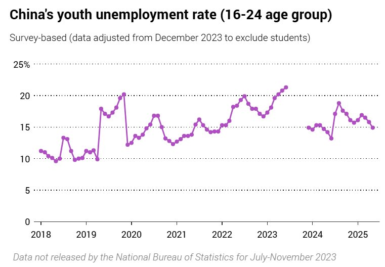 Tỷ lệ thất nghiệp của thanh niên Trung Quốc trong độ tuổi từ 16-24.